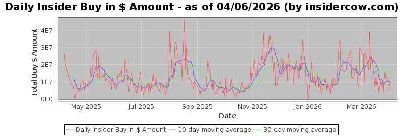 Our InsiderCharts shows the big picture and the trend of how bullish/bearish insiders are. Because a small number of big-dollar transactions may bias the dollar-amount-based charts, we've provided the number of insider-buyers chart and buyer/seller ratio chart in addition.